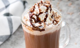 Hot cocoa with creme de cacao and creme de menthe liqueur; served with whipped cream and peppermint stick.