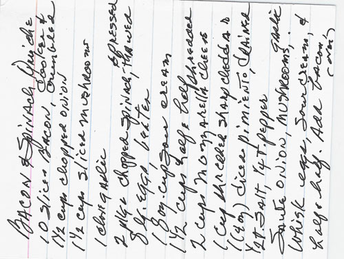 Bacon, onion, mushrooms and spinach baked in a creamy quiche.