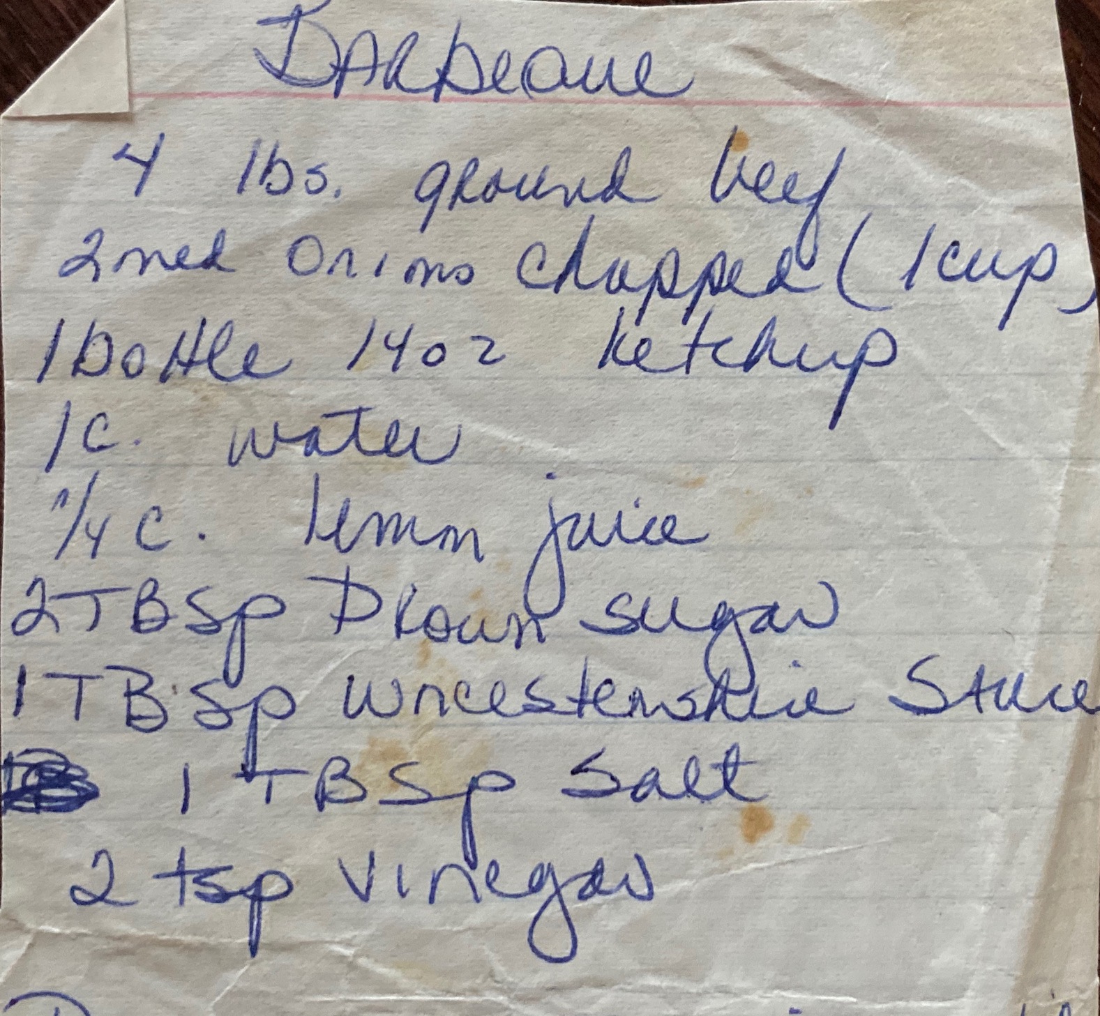 Ground beef and onion simmered in homemade barbecue sauce ingredients.