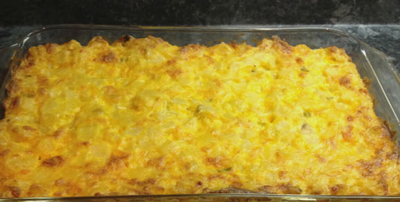 Hash browns baked in a cheesy sauce for a delicious crowd pleaser.