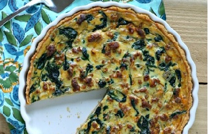 Whole9 quiche with chorizo, avocado, spinach, and onion.