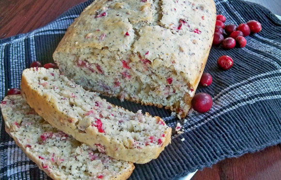 Moist quick bread loaded with poppy seeds, lemon and cranberries.