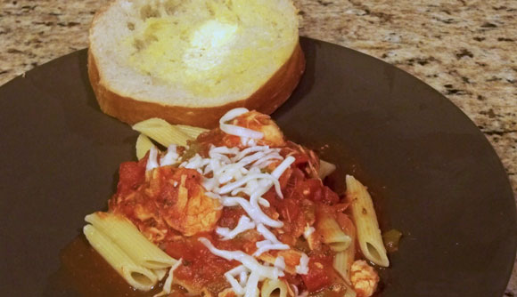 Once cooked, remove chicken and slice into bite-sized pieces (or cut easily inside crockpot, if preferred). Add back to slow cooker. Serve heaping spoonfuls on top of cooked pasta and sprinkle mozzarella on top, if desired.