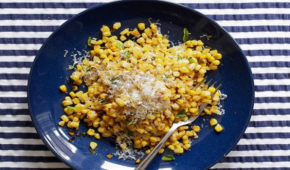 2. In a large bowl, toss corn, mint and vinegar. Add Parmesan and toss again. Serve cold or at room temperature.