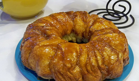 Bake at 375 degrees for 20-25 minutes or until golden brown. Cool for 1 minute in pan, then turn out onto serving plate. Serve immediately; pancake syrup will quickly begin to harden as rolls cool.
