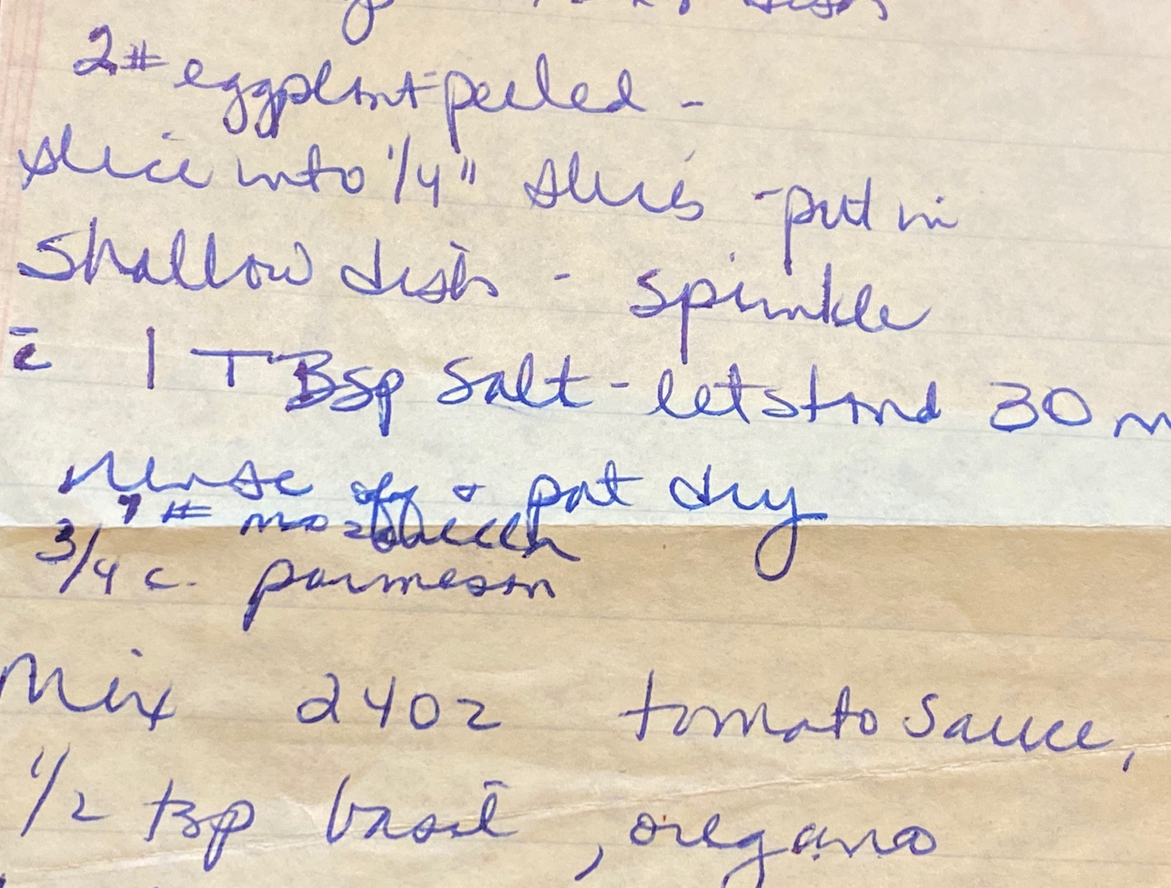 Place eggplant slices in a shallow dish and sprinkle with salt. Let stand for 30 minutes. Rinse and pat dry.