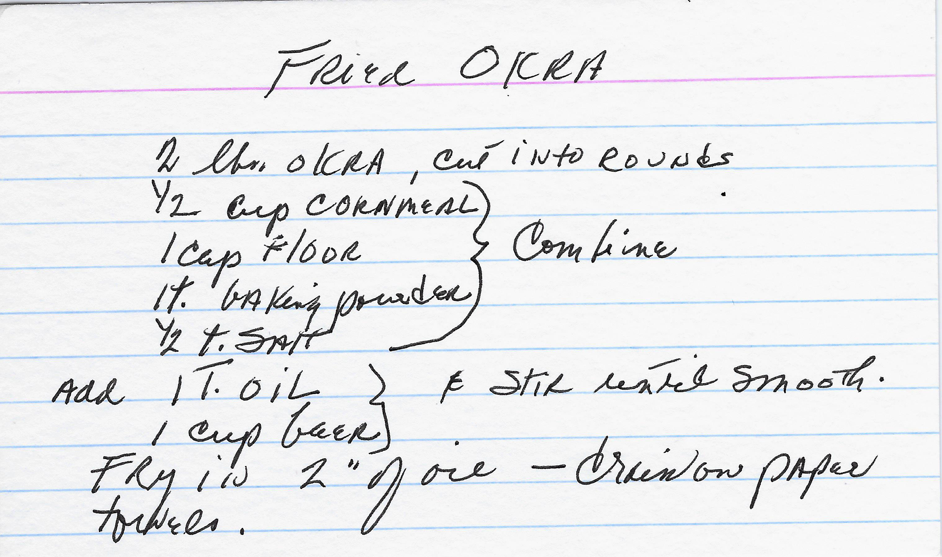 Cornmeal coated okra fried 'til golden.