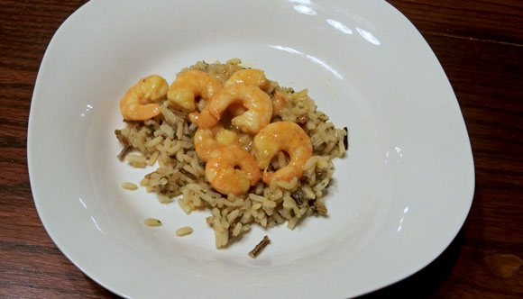 Serve the shrimp with rice (white, normally, but I like to use wild rice) and to get the full Hawaii effect, use the leftover garlic sauce to serve on top of the rice. :)