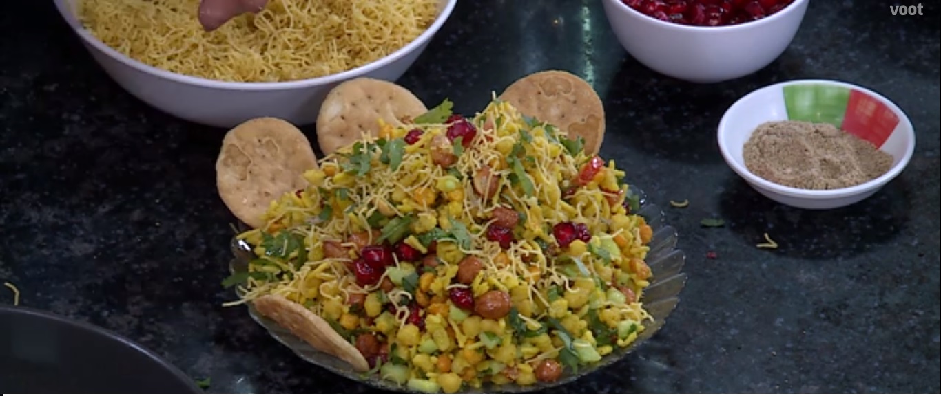Add Puffed Rice Mixture, Boondi, Sev, Fried Dal, Tomato, Cucumber and chutney and mix properly.