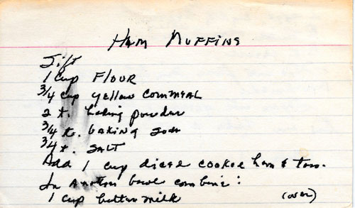 Cornbread muffins with chopped ham.