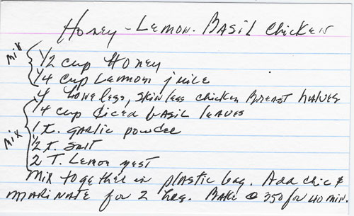 Honey lemon marinated chicken breasts, baked for a tender juicy dinner.