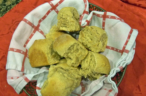 The orange juice in the recipe will not add its own flavor, but is used to mellow the bitterness in the whole wheat. Brush hot-from-the-oven rolls with melted butter, if desired, for a soft, buttery crust.