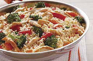 CHEESY ITALIAN CHICKEN & RICE WITH SQUASH Use zucchini, yellow squash and red peppers for cut-up fresh vegetables. Prepare and cook as directed. Sprinkle with 1 cup KRAFT Shredded Italian* Mozzarella-Parmesan Cheese Blend; cover. Cook an additional 3 min. or until melted. SHORTCUT Substitute 2 pkg. (6 oz. each) OSCAR MAYER Deli Fresh Grilled Chicken Breast Strips for the fresh chicken. Cook vegetables in 1 Tbsp. oil until crisp-tender. Add chicken breast strips, broth and water; continue as directed. MAKE IT EASY Substitute 2 cups frozen vegetables for the fresh vegetables. Add with chicken broth and continue as directed.