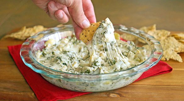 In a large bowl combine artichokes, cream cheese, yogurt, Parmesan cheese, 1/2 of the Mozzarella cheese, garlic salt, and kale until completely mixed.