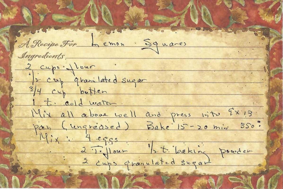 Mix eggs, 2 T. flour, baking powder, 2 cups of sugar, lemon juice and lemon rind. Beat well. Pour over warm crust and return to oven. Bake 25 minutes.