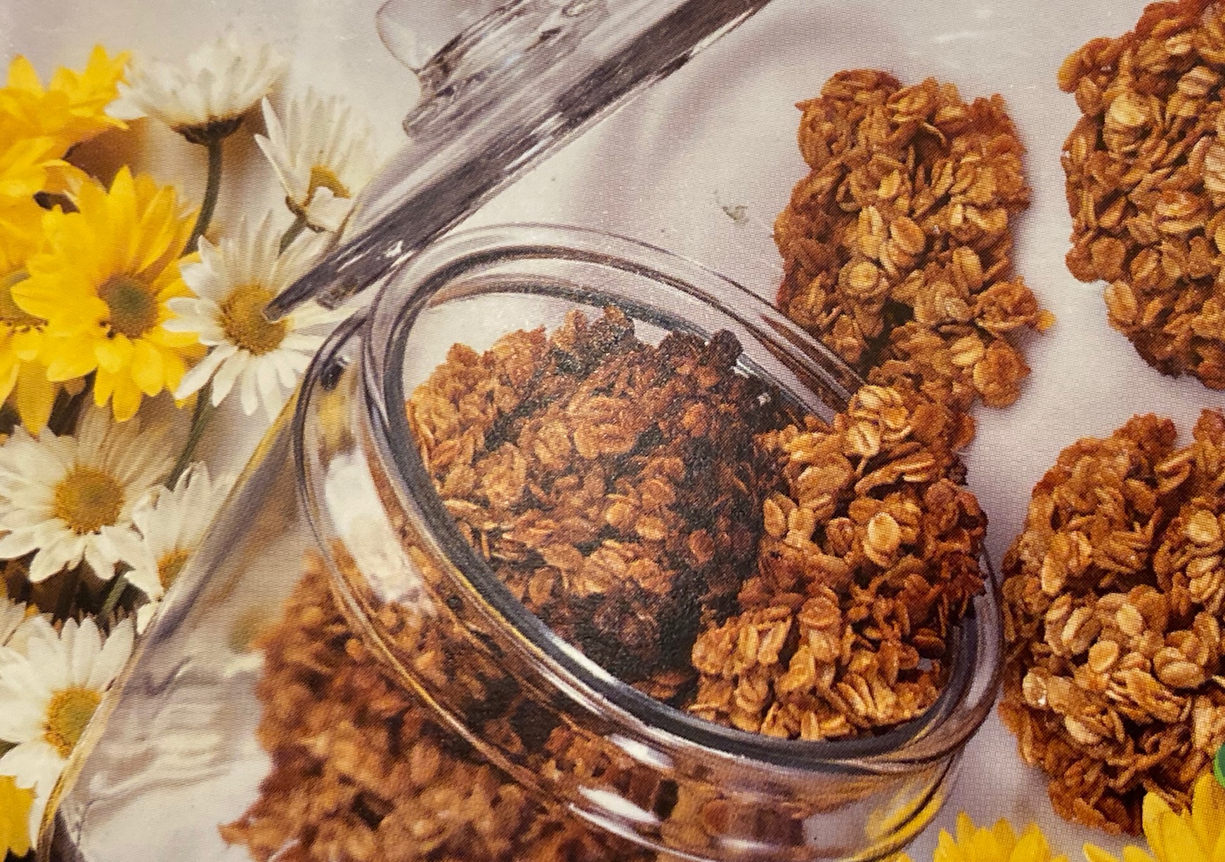 Using a wooden spoon, in medium mixing bowl combine oats, sugar and baking soda; stir in butter and egg substitute.