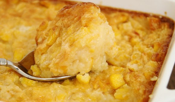 Pour corn mixture into a greased casserole dish. Bake at 350 degrees until golden brown and the center is not liquidy.