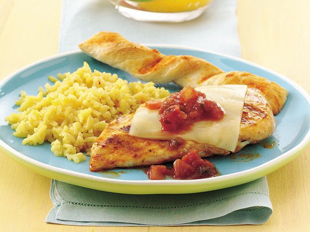A sprinkling of ready-made taco seasoning is the simple start to the delicious grilled chicken in this South-of-the-Border dish, topped with melted cheese and salsa.
