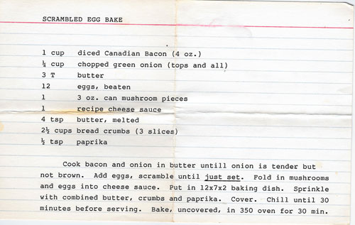 Fold mushrooms and eggs into prepared cheese sauce. Put in 12-x-7-x-2-inch baking dish.