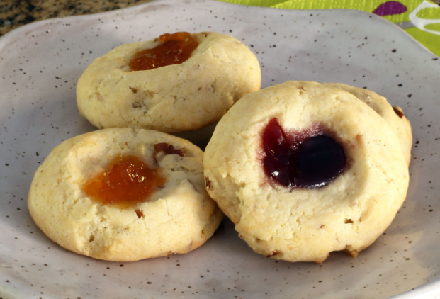 A recipe from my cookie cookbook ("1001 Cookie Recipes" by Gregg R Gillespie), this recipe tastes especially good with boysenberry preserves. Find your favorite fruit flavor!