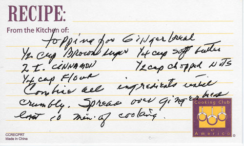Sweet crumble topping for spreading over gingerbread during last few minutes of baking.