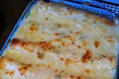 4. Stir in sour cream and chilies. Do not bring to boil, you don't want curdled sour cream. 5. Pour over enchiladas and top with remaining cheese.