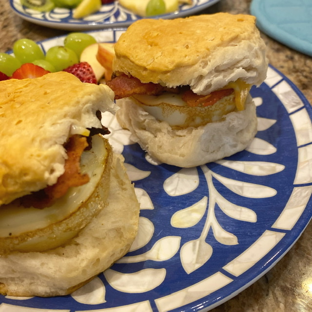 Bacon, Egg and Cheese Biscuit Breakfast Sandwiches