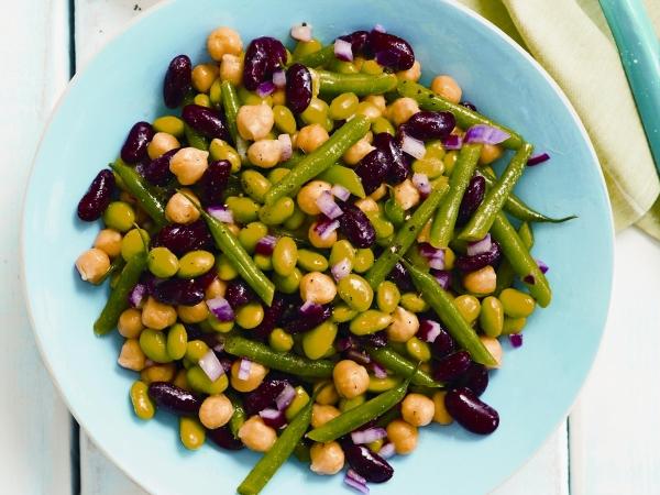 3. Add cooked green beans, edamame, kidney beans, and chickpeas. Toss together until well combined. Season to taste. (Makes 6 cups.)