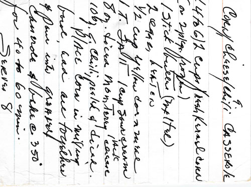 Corn baked with cheese, green chilies, and seasonings.