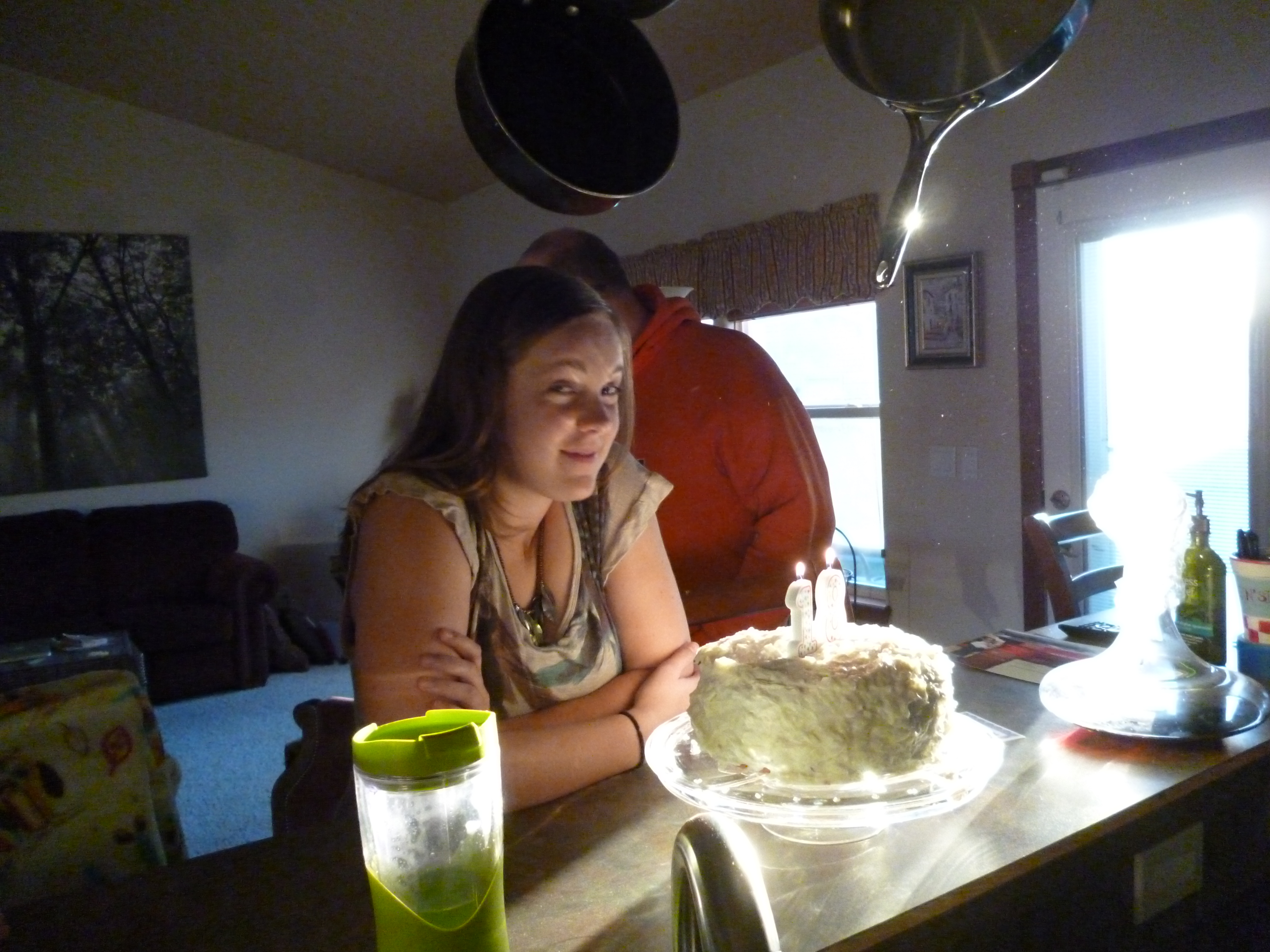 White cake with a cream cheese frosting topped off with flaked coconut; wonderfully moist cake.