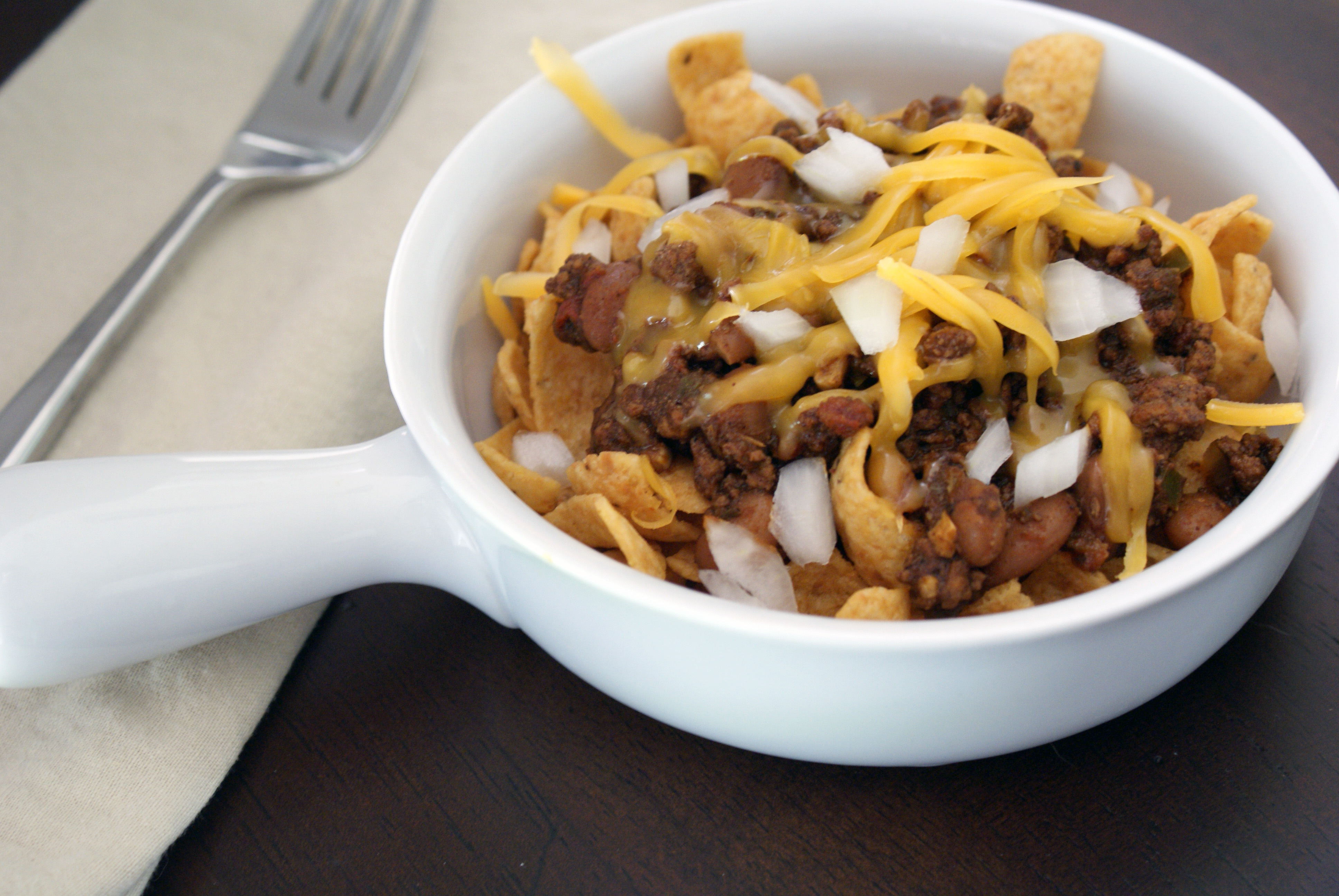 Layer 2 Cups of Chili in the bottom of a casserole dish. Layer 1/2 Cheese, then 1/2 chips. Repeat layers. Bake at 350 for about 15 minutes or until hot all the way through.