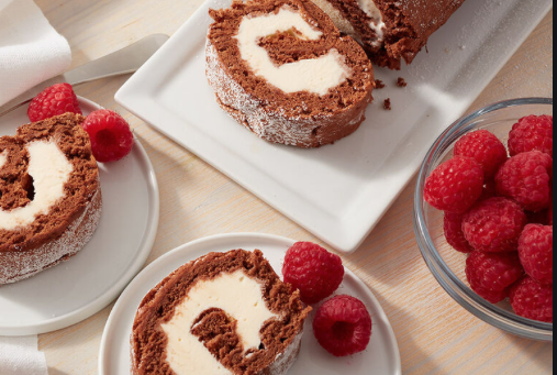 Spread with softened ice cream (don't spread ice cream too thick). Can add nuts, broken peppermint candy pieces, candy bar pieces; sprinkle over ice cream and re-roll cake. Can be rolled in powdered sugar.