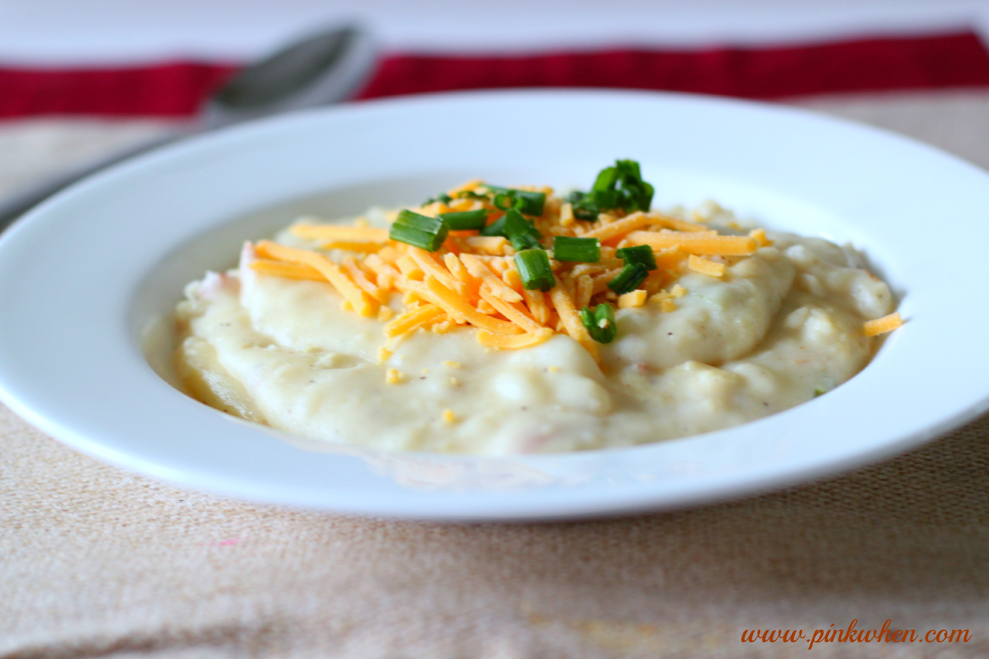 Step 5: Add in the bacon slices, sour cream, salt, pepper, and cheese until mixed well and the cheese is melted. Serve warm and with toppings of sour cream, bacon, green onion, and cheese if desired.
