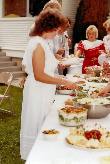 Just before serving, cut tomatoes in wedges and arrange around top of salad.