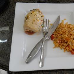 7) Serve stuffed chicken breasts on the cooked rice.