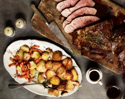 1. Season roast with salt and pepper. Brown in bacon fat and garlic.