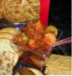 Drain all jars and cans. Put all ingredients, except the fish, into a large Dutch oven. Bring to a boil, then simmer for 20 minutes, stirring often.