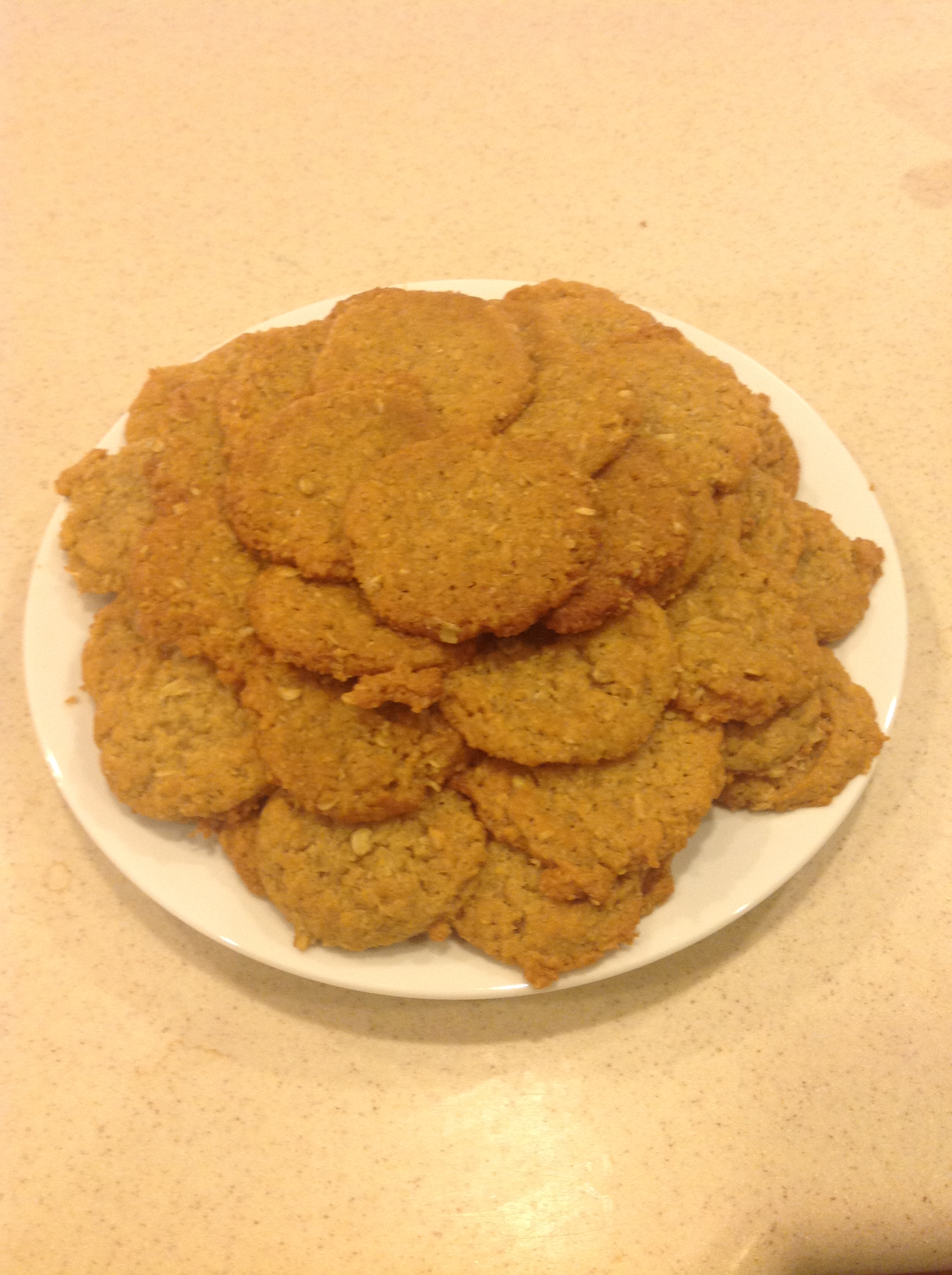 Tasty coconut and oat cookies, originally created to ship from \"Down Under\" to the troops of the Australia-New Zealand Army Corps serving in Europe during WWI.