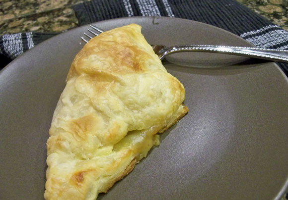 Bake at 400 degrees for 14 to 15 minutes, until puffed and nicely browned on top. While turnovers bake, repeat rolling, filling and folding with remaining pastry sheet, filling and egg white.