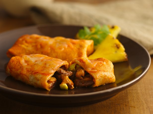 A spicy beef and bean filling is all bundled up in a south-of-the-border burrito.