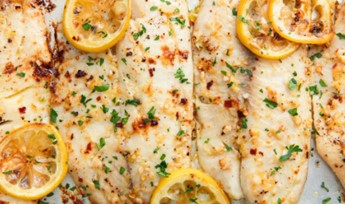 Baked tilapia with seasoning and creamy parmesan sauce.