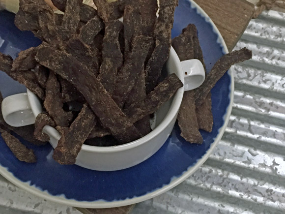 Homemade beef jerky filled with flavor; marinates overnight ahead of time.