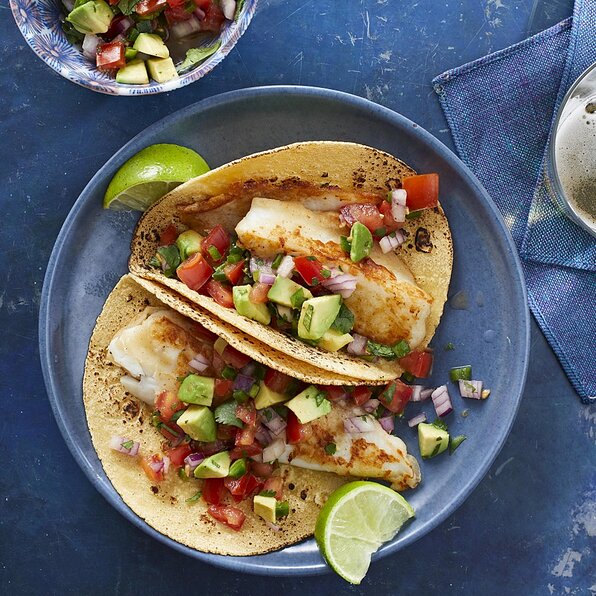 Beer-Battered Fish Tacos with Tomato & Avocado Salsa