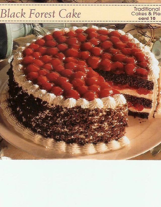 4. Place one cake layer on serving plate. Spread w/ 1 C whipped cream; top w/ 3/4 C. cherry topping. Top with second cake layer, 1 C. whipped cream and 3/4 C. cherry topping; top w/ third cake layer.