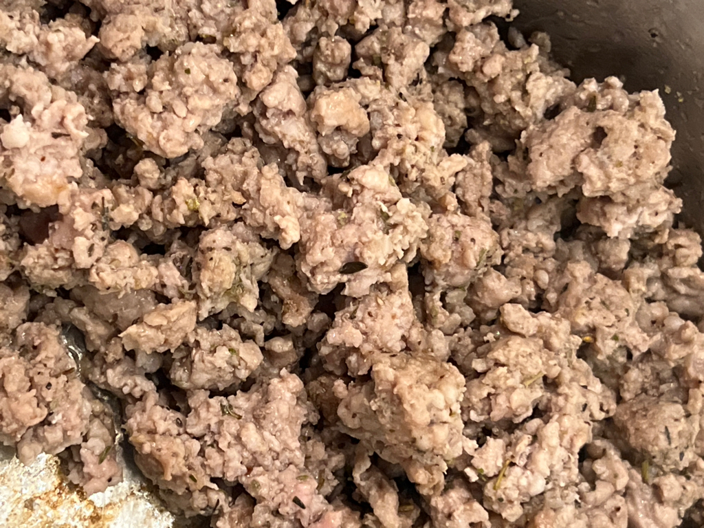 Add pork to a skillet over medium heat. Mix in all seasonings. Brown until all pink is gone.