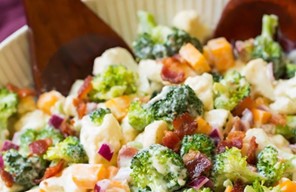 Combine broccoli, cauliflower and carrots and toss with dressing.