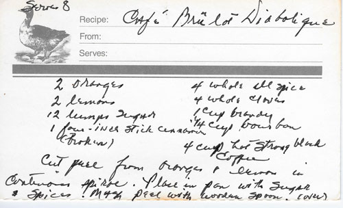 Coffee with mulled spice seasonings topped off with brandy and bourbon.