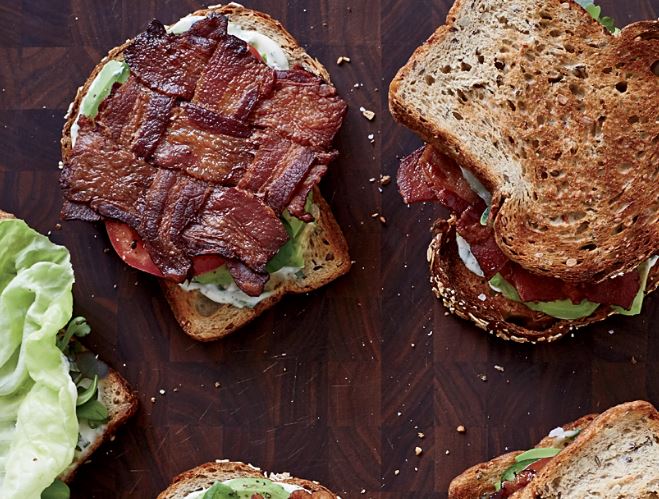 Avocados and lemon-herb mayo add a California touch to a traditional BLT sandwich.