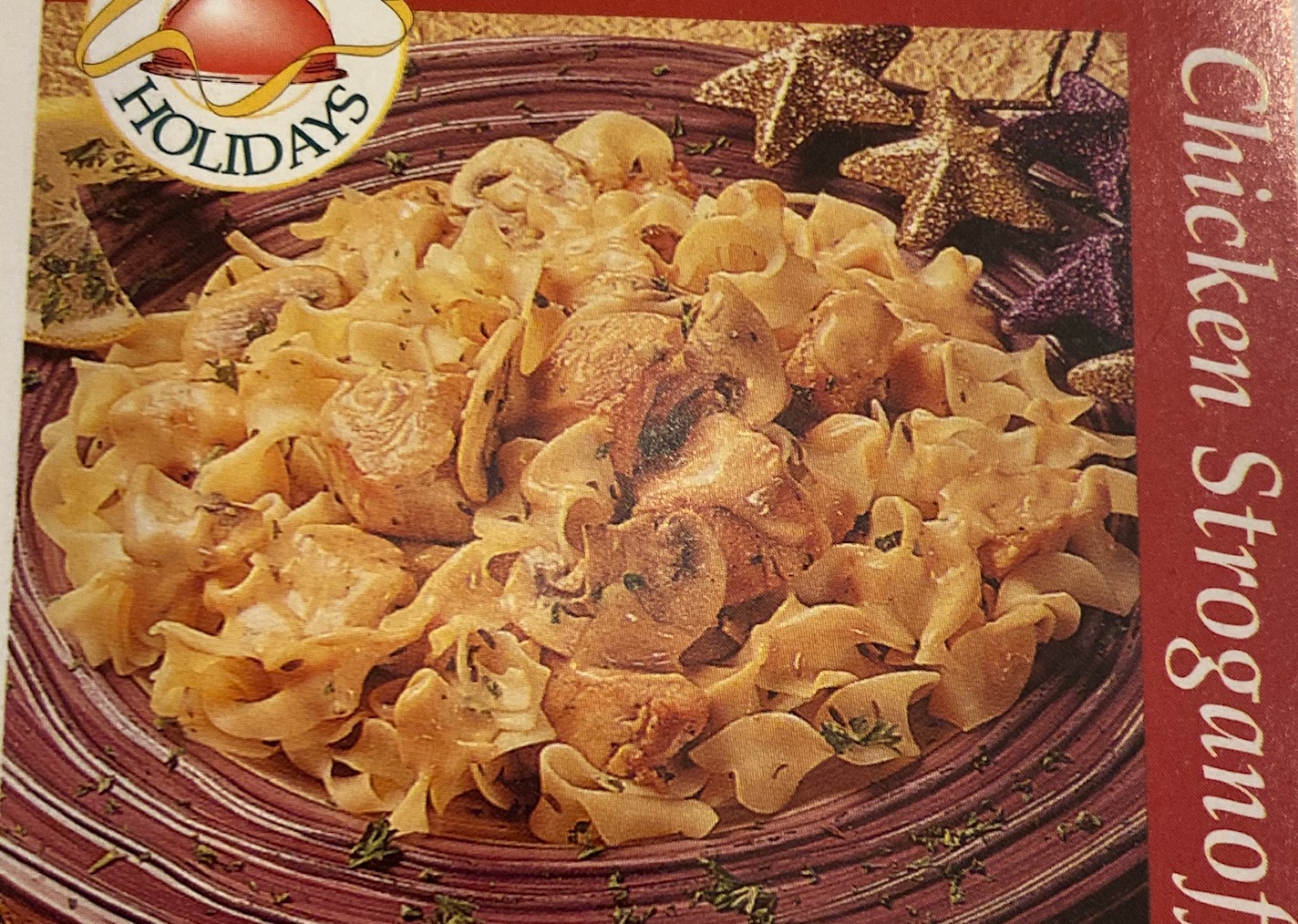 Cubed chicken baked with sauteed mushrooms in a creamy yogurt sauce.