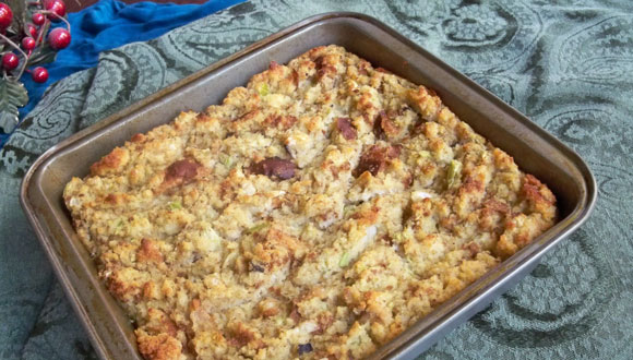 Terrific moist cornbread dressing, perfect for Thanksgiving.